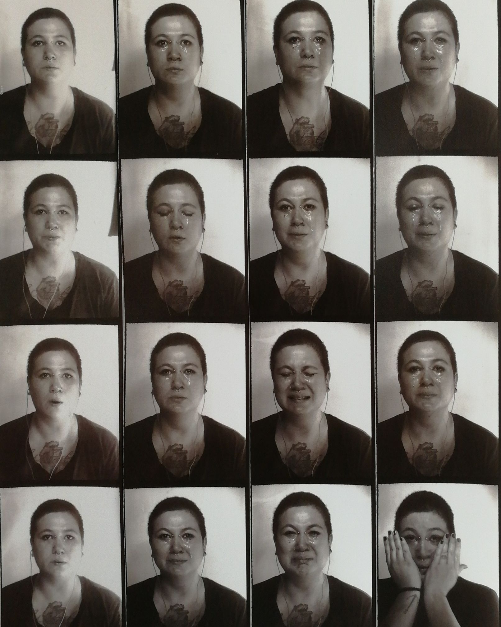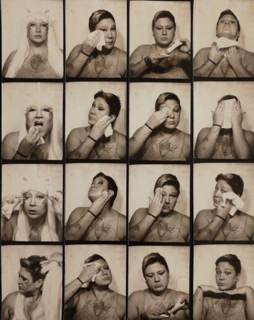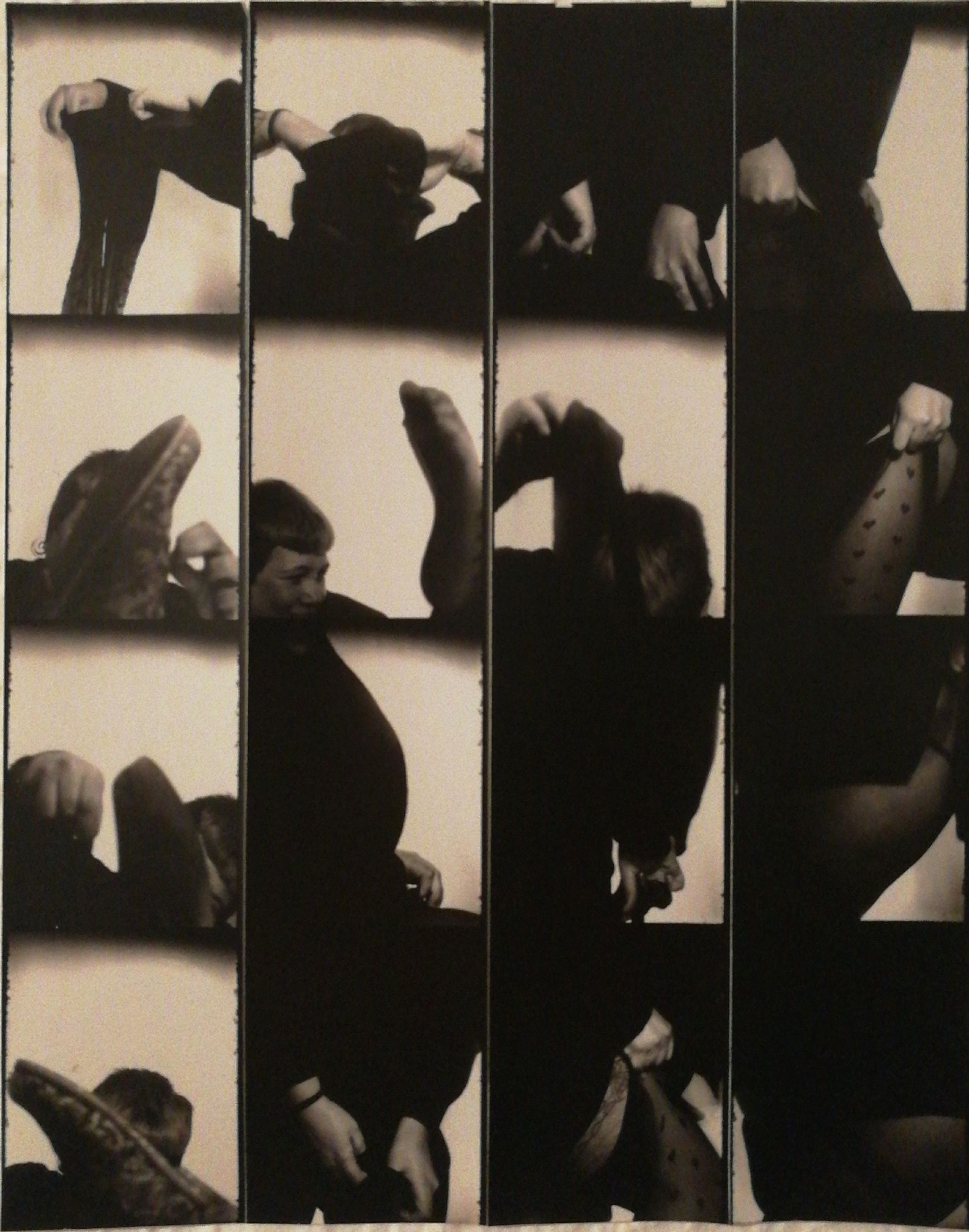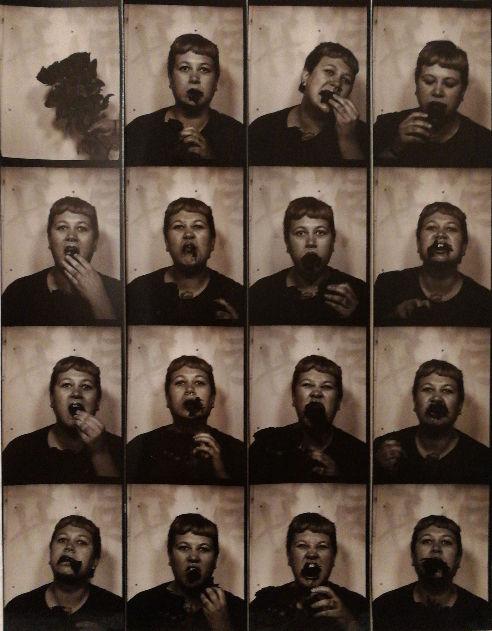 Just as ordinary as the actions performed throughout the series are the photobooths. Their choice as performative space is quintessential to my desire to seek the borders with the mundane, material space. The resulting record enabled by this choice came to give the project its title: 16frames.
