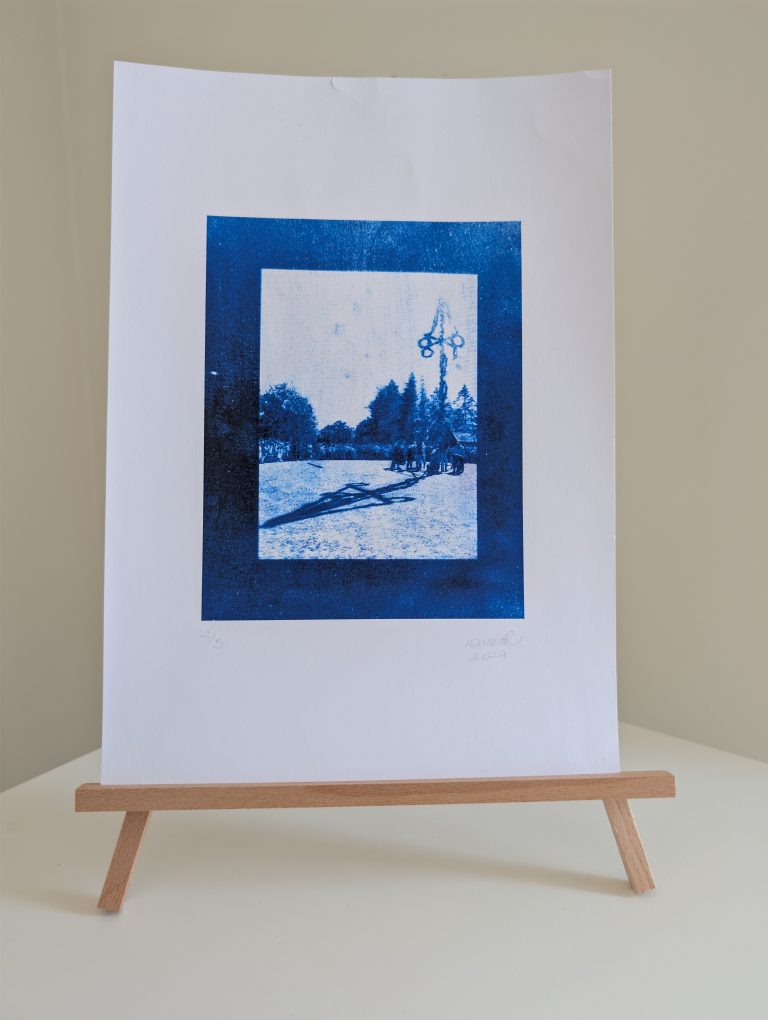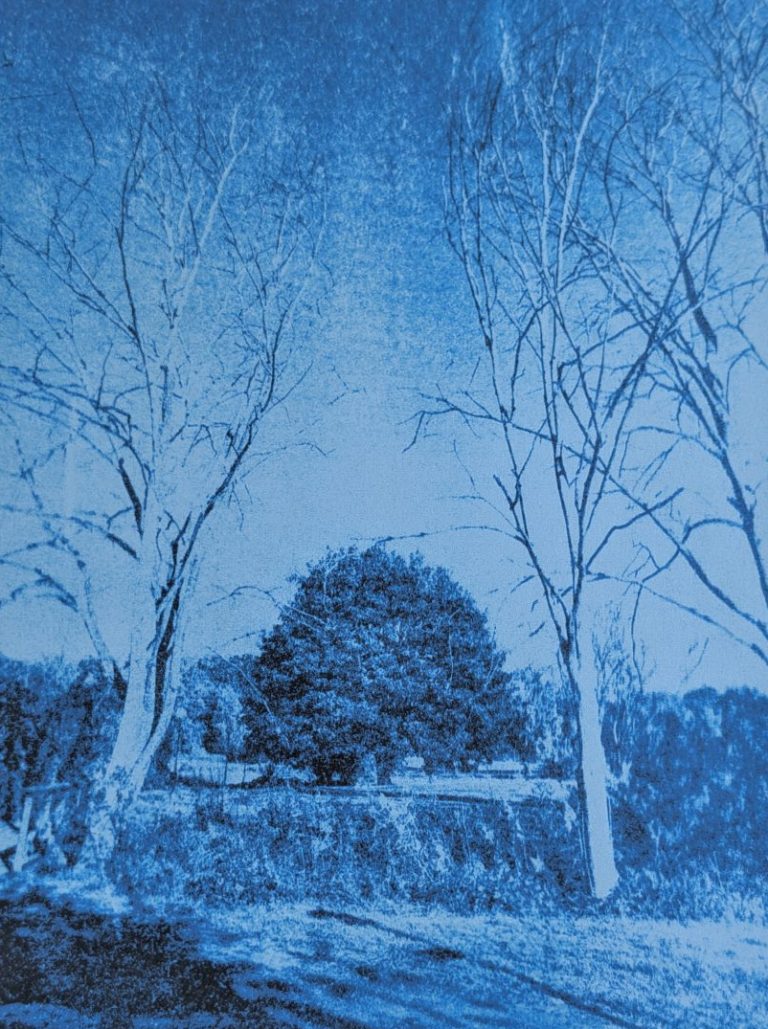 Cyanotype is one of the oldest photographic printing processes in the history of photography. The distinctive feature of the print is its shade of cyan blue, which results from its exposure to ultraviolet light.