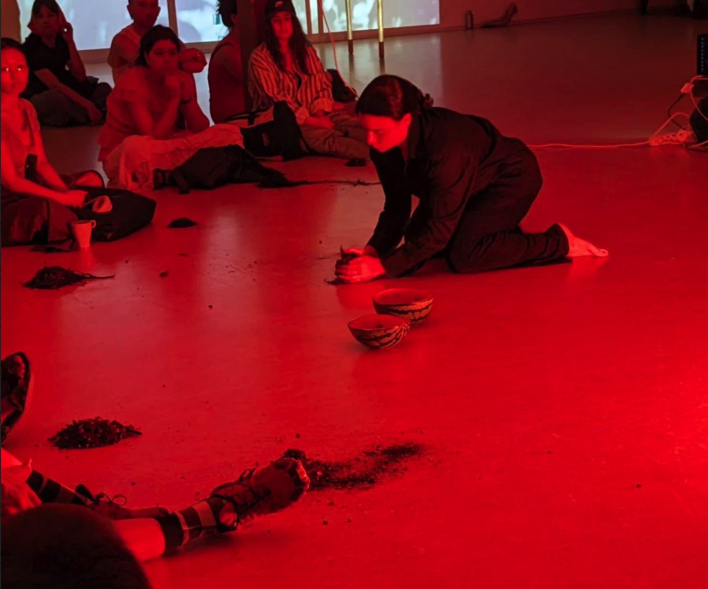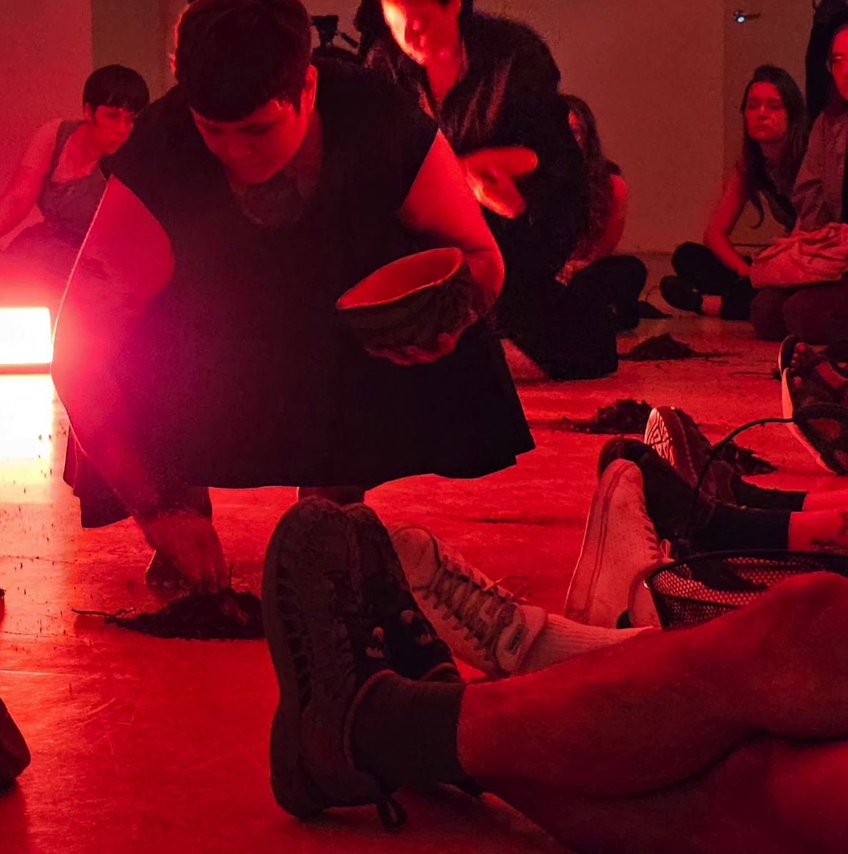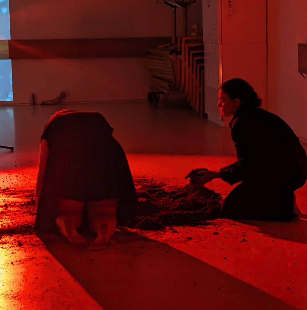 This performance uses the act of gazing to reflect on the ongoing genocide in Gaza. As we navigate the space, movements and emotions traverse between us. Through the mirror’s lens, we invite the audience to witness the intimacy and the vulnerability in the act of returning the gaze.